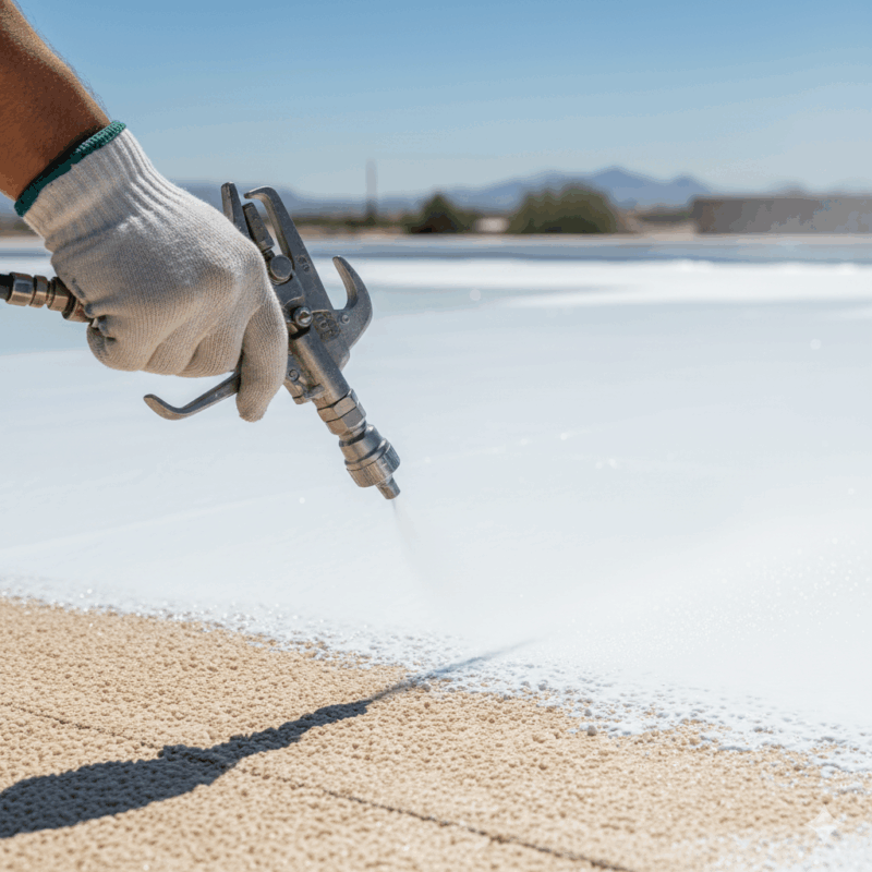 Most of the time, silicone roof coatings need to be reapplied every 10 to 20 years. The coating gets thinner over time because of exposure, but adding a fresh layer makes it stronger again. Cleaning once a year helps keep the reflectivity, since pollen and dust from the desert can make the bright white surface less luminous. Both foam and silicone systems are easy to take care of. You just need to wash them regularly, inspect for damage, and recoat them when the surface starts to fade.